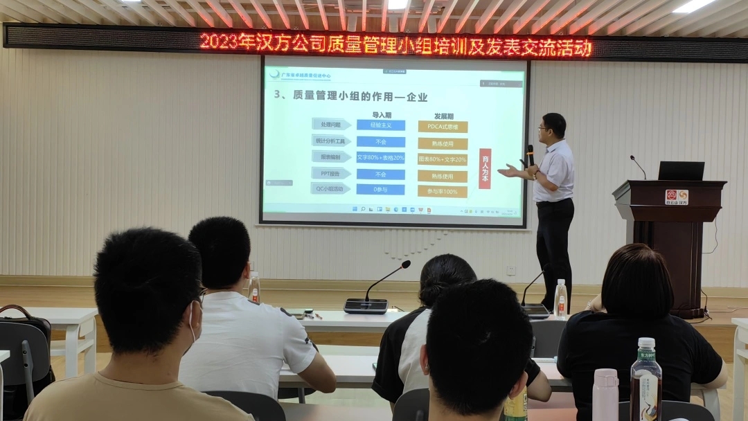 发表交流活动之余,王松老师对我司员工进行了QC小组活动课题指导,结合优秀案例,从常用工具方法等方面进行了生动并专业的讲解,参与培训的人员充分感受到遵照PDCA(计划、执行、检查、处理)循环方法对有效开展质量管理小组活动的作用。