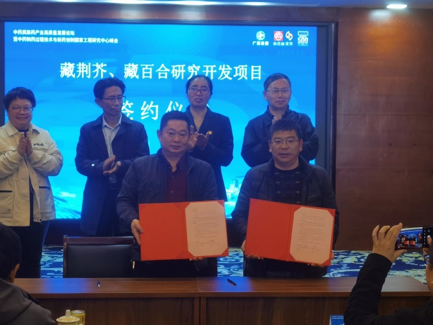 其次,以国家工程研究中心藏药综合开发创新联合体为载体,达成藏荆芥、藏百合研究开发项目初步合作意向,举行了签约仪式,兰小中教授代表西藏农牧学院、王浩总经理代表国家工程研究中心进行签约。