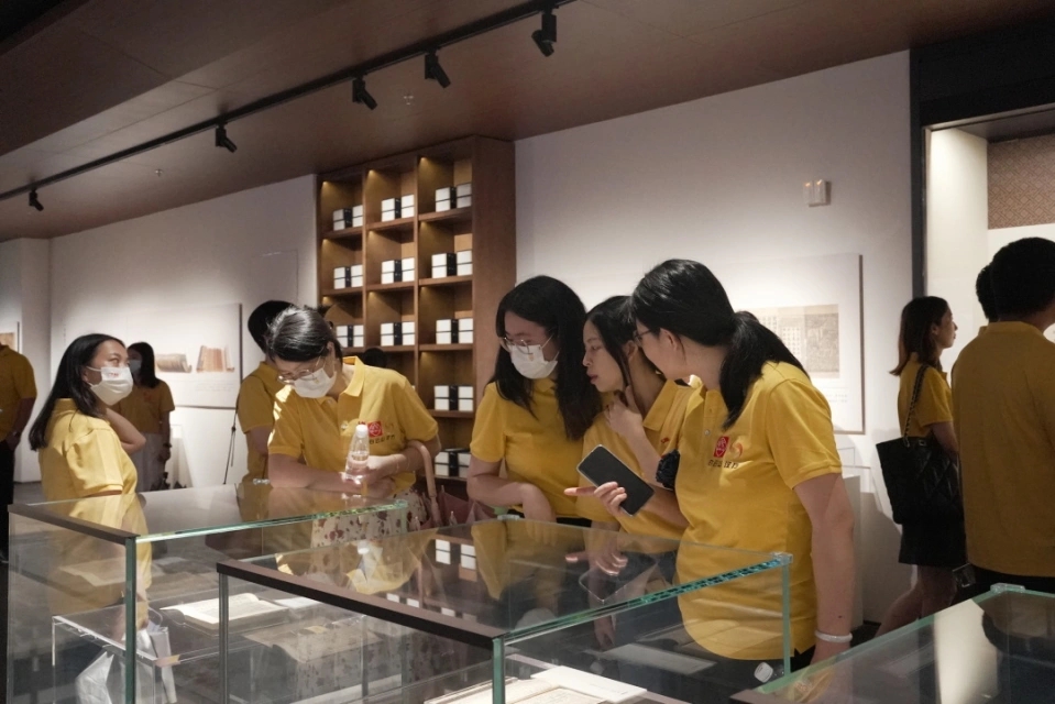 在现场解说员的带领下,党团员穿梭在“中华版本概览”“红色广东”“海上丝绸之路”“广东美术名家典藏作品”“黑胶唱片”等展览厅,聆听着一系列岭南特色与时代气息交织的版本故事。