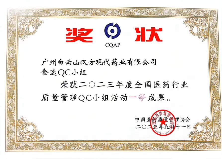 2023年9月7-12日,由中国医药质量管理协会举办的第 44次全国医药行业质量管理 QC 小组成果交流大会在甘肃省兰州市召开。本次会议主题是“持续改进 追求卓越 促进高质量发展”。 会议对 2023 年全国医药行业优秀 QC 小组、质量信得过的班组进行点评。白云山汉方在本次交流大会中斩获佳绩。