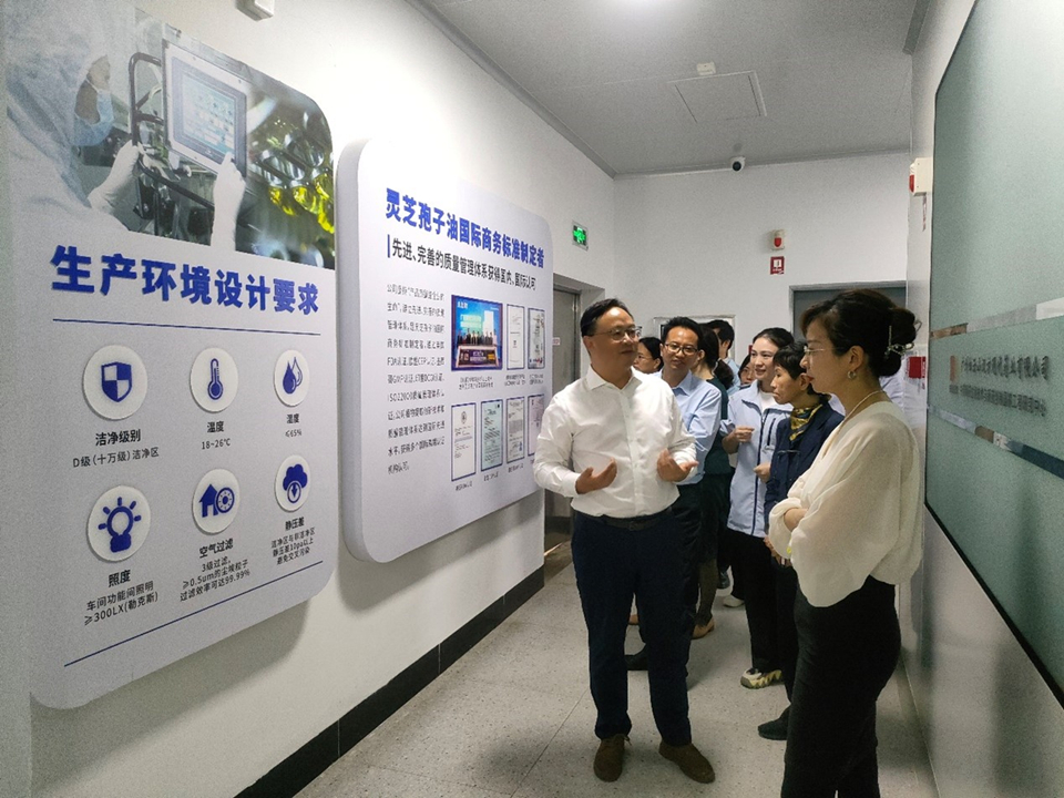 双方就共建创新联合体及具体项目合作进行了充分的交流,并就企业合作模式和产品合作设想进行了深入的探讨,为后续双方的合作提供了明确的思路和宝贵的意见。通过参观灵芝孢子油数字透明馆,加深了双方对后续合作的信心。