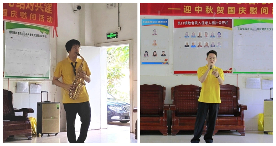 阵阵嘹亮的歌声从房间里传出来,老人家笑得合不拢嘴。熟悉的粤语老歌勾勒起他们尘封已久的时代回忆,大家齐声哼唱。随后,来自汉方的“音乐才子”曾梓轩还为大家现场演绎《东方之珠》萨克斯表演,旋律优美舒展,让听众对香港回归祖国26年的变迁历历在目,令人心中感动油然而生。