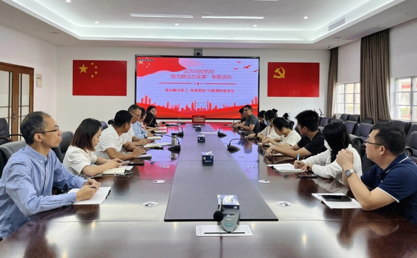 为推动监督触角向基层“神经末梢”延伸,破解一线监督不畅难题。11月9日上午,白云山汉方纪检机构立足监督主责,聚焦职工身边“急难愁盼”问题开展调研座谈,推动“我为群众办实事”走深走实。本次活动由纪检办公室主任彭兴华主持召开,集团纪委驻企纪检专员、公司纪检机构负责人韦兴,从化基地党工团职工代表共18人参加活动。