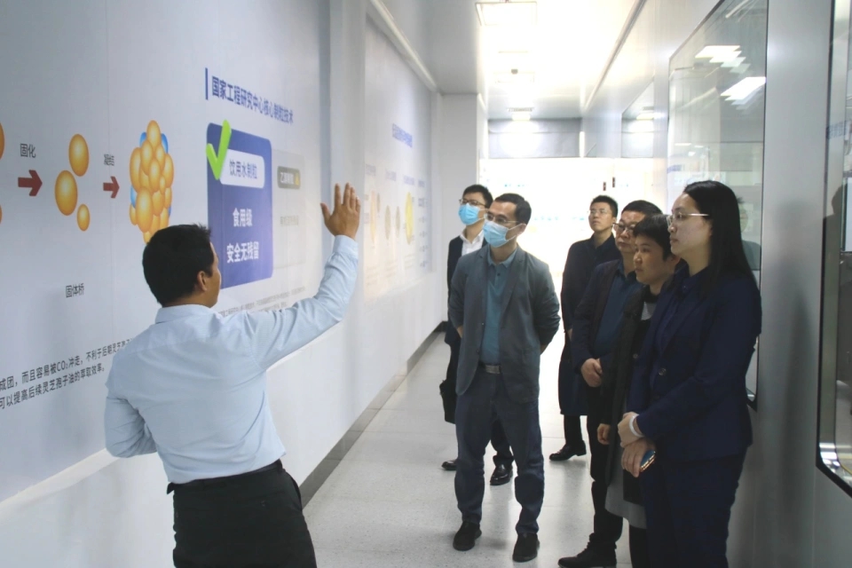 白云山汉方党总支副书记、工会主席郑燕华带领荔湾区科工信局党组书记何健仪一行实地参观灵芝数字透明馆和特医生产线,详细介绍了灵芝孢子油的生产工艺和制作流程,以及了解特医生产车间。