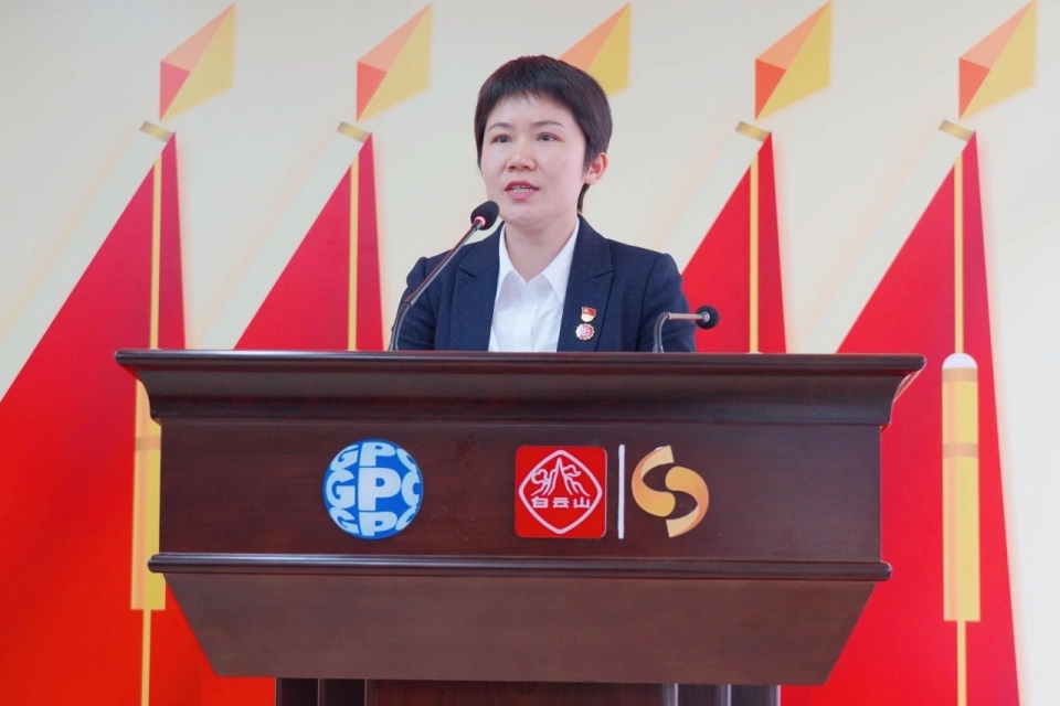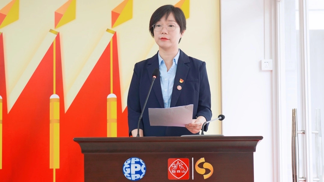 ▲白云山汉方党总支副书记、工会主席郑燕华主持会议