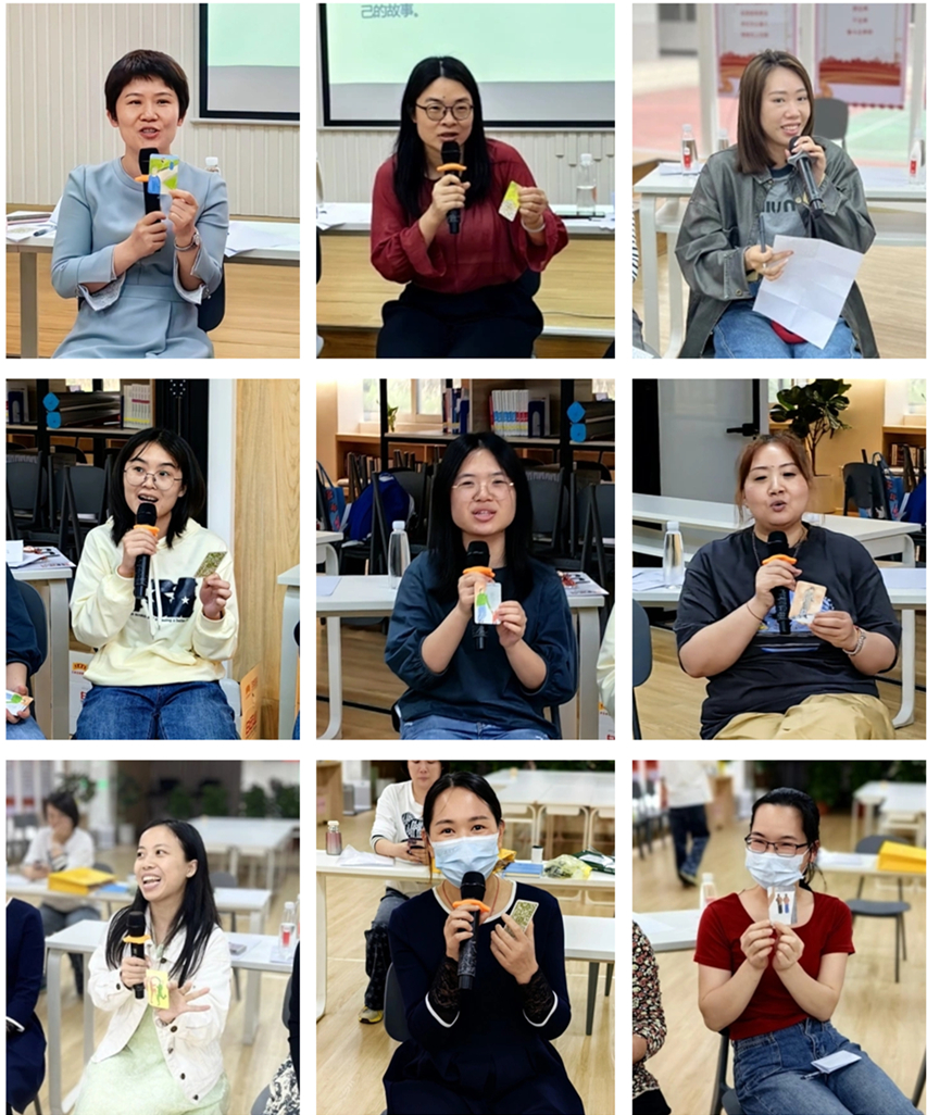 随后,童老师通过讲述个人故事为开头带领大家进入OH卡牌“故事接龙”游戏,学员们通过随机抽取卡牌,用自己的看法和转念描述承接上一位“主人翁”的故事,每位学员积极参与其中,串联起一个充满正能量和想象色彩的完整故事。借由卡牌看见自己当下的困扰和期待,在追寻内心最直接的感觉和意识的同时练习倾听、反应和表达的能力,既锻炼了多角度思考问题,又在交换想法和直觉中获得支持、感悟与心灵成长,体验到OH卡牌的魅力。