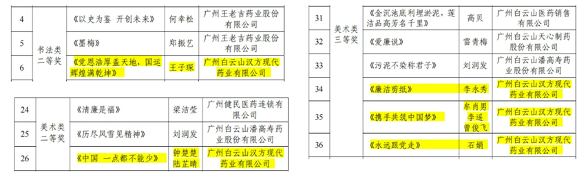 “廉洁文化书画摄影比赛”获奖名单(汉方公司)