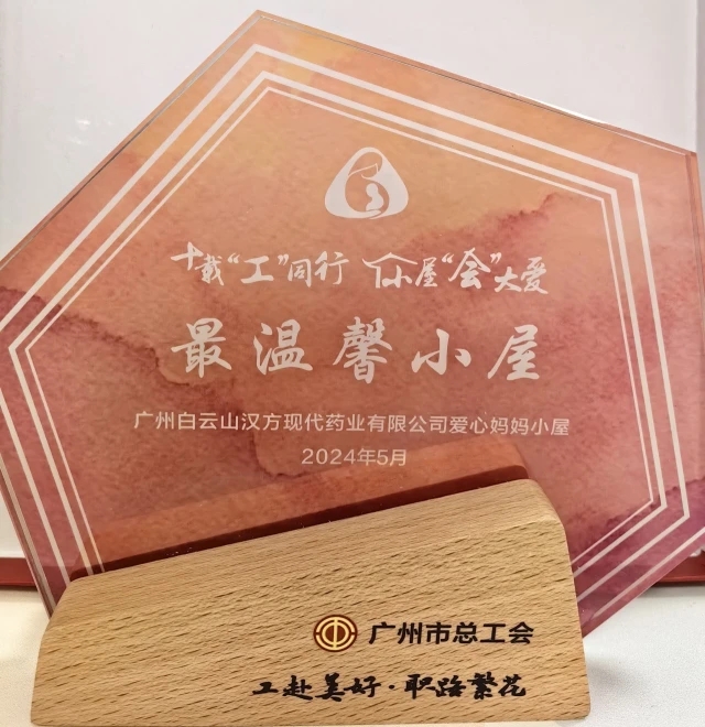 近日,广州市总工会女职工委员会举办了“十载‘工’同行,小屋“会”大爱”——广州市女职工休息哺乳室(爱心妈妈小屋)十周年系列庆祝活动。经过严格的评选,白云山汉方爱心妈妈小屋凭借其温馨的环境和完善的设施,荣获“最温馨小屋”称号。白云山汉方风控审计部经理、工会副主席卢秋荣出席活动并领取奖项。