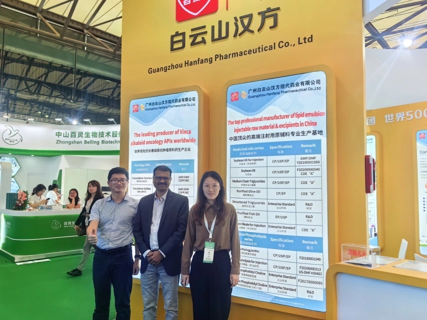 本次展会上,白云山汉方展示了丰富的原料药产品线,包括高端脂质注射用原辅料、抗肿瘤原料药、特色原料药等多个领域。这些产品均经过严苛的质量控制流程,确保高品质、高纯度、高稳定性,以满足不同客户的个性化需求。特别是优质的脂肪乳原辅料和抗肿瘤原料药产品,吸引了国内外众多制药企业的目光。