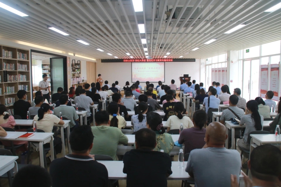 白云山汉方党委副书记、工会主席郑燕华、高管副职王浩,从化区新时代文明实践中心主任陈哲、副主任龚煖宏,广州市公安局从化区分局温泉派出所教导员陈丽云、广州市公安局从化区分局指挥中心副主任蔡思铭、广州市公安局从化区分局温泉派出所副所长黄彦,广州银行支行行长卢俊光、主管林振兴,企业党员代表、职工群众等110余人参与活动。党办副主任黄展平主持会议。