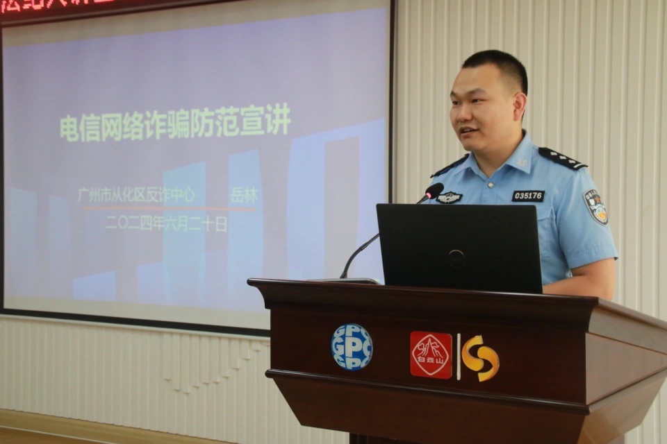 广州市公安局从化区分局刑警大队民警岳林以《电信网络诈骗防范宣讲》为题展开讲解,通过娓娓道出现实生活中网上刷单、冒充公检法、杀猪盘、购物交易等真实典型案例,深度剖析了犯罪份子常用的作案手段,以及告诫大家会受到哪些法律制裁。