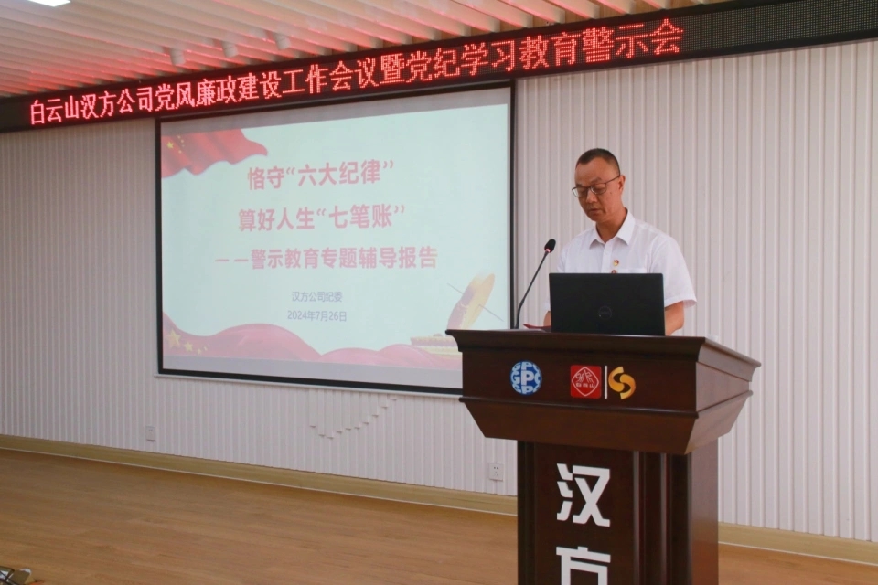 袁诚同志指出,汉方公司在2024年上半年由党总支升格为党委建制、成立纪委。公司两委严格落实党风廉政建设责任制,坚决贯彻全面从严治党战略部署,扎实开展党风廉政建设工作,营造了风清气正的干事创业氛围,发挥了监督保障执行的作用。同时指出,开展警示教育是党纪学习教育的重要内容,全体党员要深化以案促学、以案为鉴,举一反三,提高廉洁风险防范意识,以学纪知纪明纪促进遵纪守纪执纪。