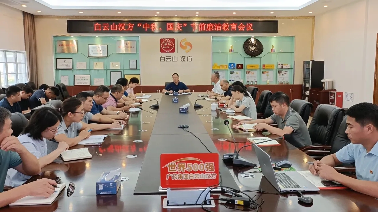 中秋、国庆节假将至,为加强警示教育,严明纪律规矩,营造风清气正的节日氛围。9月12日,白云山汉方召开中秋、国庆节前廉洁教育会议。公司党政领导班子成员、中层管理人员及关键岗位职工代表参加会议,会议由党委委员、纪委书记韦兴主持。