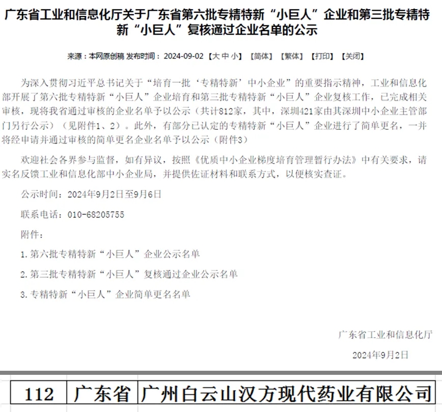 本次入选国家专精特新小巨人企业,凝聚了汉方公司多年的心血,说明汉方公司在高端制剂用天然原辅料领域一系列旨在“强链”“补链”的技术创新成果及创新产品获得了国家及行业的认可。入选国家专精特新小巨人企业,将为汉方公司下一阶段的高质量发展注入新动力,汉方公司以此为契机,对标世界一流水平,进一步提升企业创新能力和专业化水平,增强产业链配套能力,为加快推进新型工业化、发展新质生产力、完善现代化产业体系提供有力支撑。