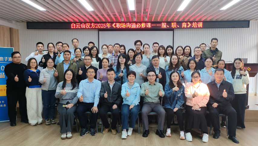 为提升员工沟通能力和汇报水平,白云山汉方于12月6日组织开展《职场沟通必修课——报、联、商》培训。本次培训邀请了中国管理科学研究院高级培训师郭宝健老师授课,聚焦“报告、联络、商谈”这三项核心技能,旨在为员工提供一套提升沟通效率的实用方法。